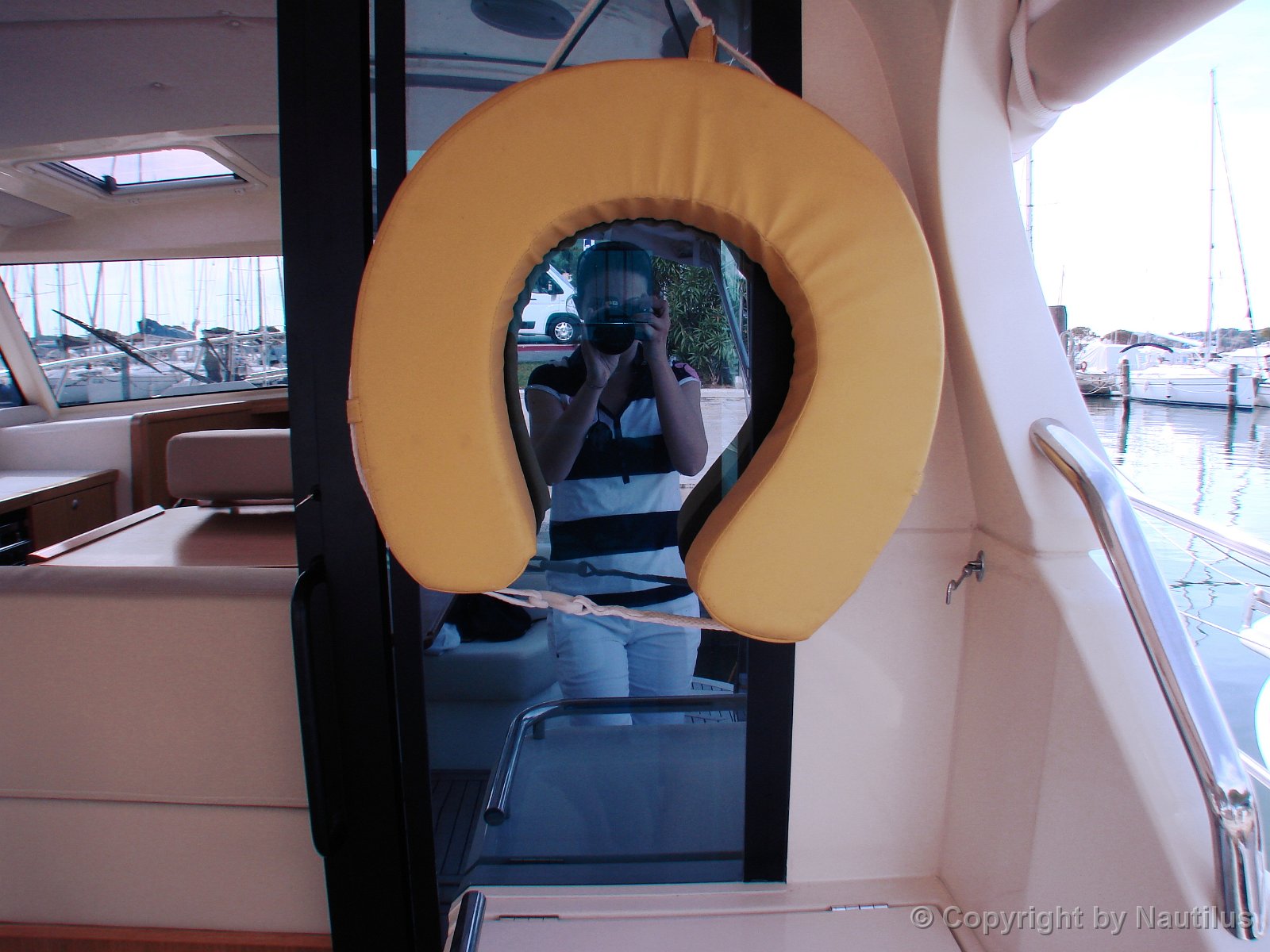 Adriana 36 – EXTERIOR - DECK, HULL and COCKPIT Fiber - glass hull made by hands includes coat of isophthalic white GELCOAT and isophthalic polyester resin. Deck of Adriana 36 is made in sandwich technology with expanding PVC. Cockpit and stern platform are covered by teak, swim ladder and hand holders are made of stainless steel. Cockpit is usually the most frequently occupied place aboard and the layout and ergonomics of this space dictate how we use and enjoy the yacht and large cockpit area is essential feature at Adriana 36. It provides plenty of space for relaxing or sunbathing. This comfortable cruising yacht (lobster type) with elegant semi-displacement hull is equipped with Yanmar diesel engines of 2x180 HP or 2x220HP, with 4 blades propellers.