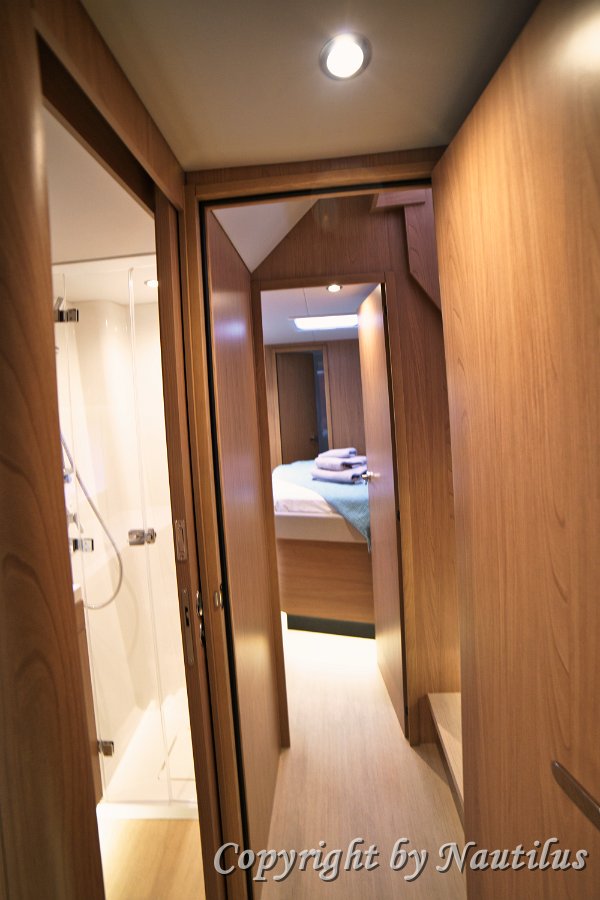 Bali-58-Fly-Kabine Desna krmena kabina Komfor za goste Privatno utočište Direktan izlaz na krmu Prostor za stvari Privatna kupaonica Hodnik lijevog trupa Gostinjski WC Lijeva krmena kabina Udoban bračni ležaj Luksuzna oprema Opuštajuća atmosfera Ugodan ambijent Kabina s odvojenim krevetima Dvokrevetna (Twin) kabina Efikasan raspored Raznolik smještaj Desna pramčana kabina Postavka pramčane kabine Miran kutak Krovni prozor