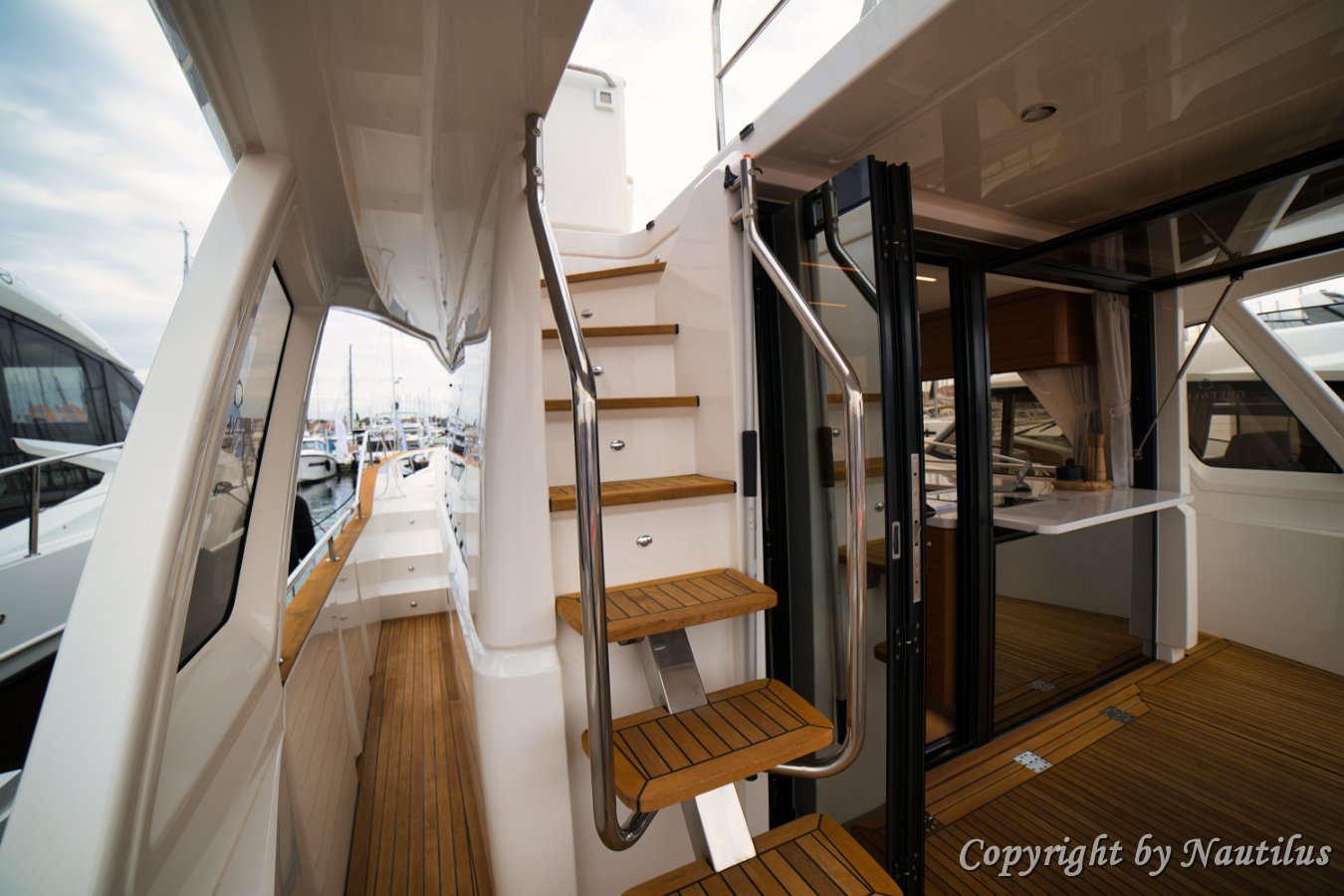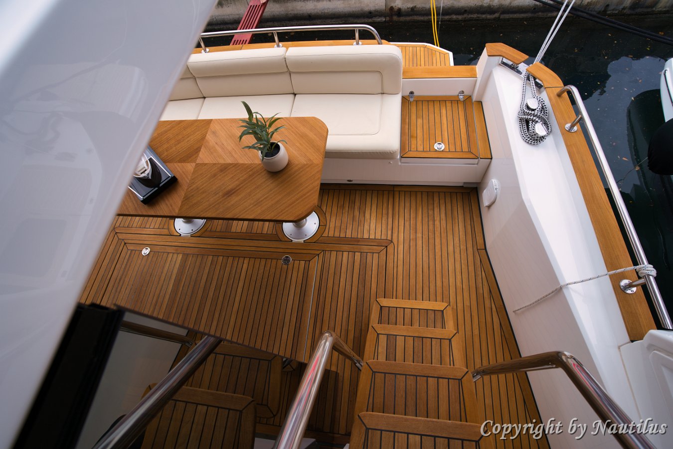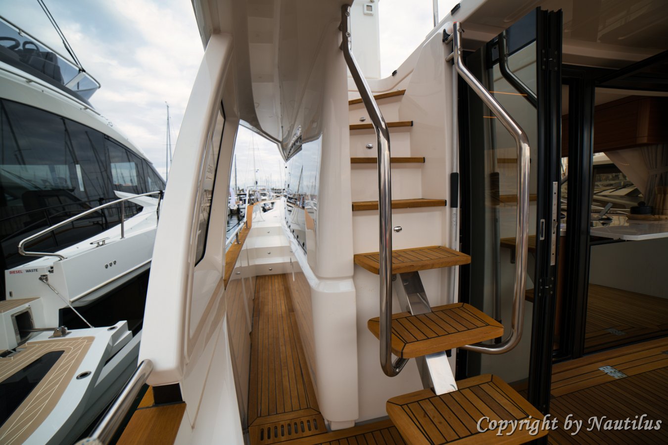 Greenline-48-Fly-Deck Greenline 48 Fly Red Hot Dining on Red Hot Greenline Open Concept Flow on Red Hot Greenline Flybridge Access Greenline Walkways Teak Steps on Red Hot Red Hot Sun Lounge Greenline Solar Power Red Hot Stern Platform Greenline 48 Side View Foredeck of Red Hot Cockpit on Red Hot Greenline Cockpit Layout Socializing on Greenline 48