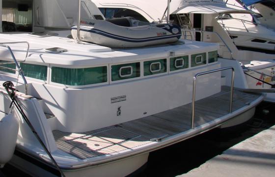 Ljubitelji plivanja bit će oduševljeni platformom za kupanje Lagoon-a 44 koja se proteže čitavom širinom krmenog dijela (preko 6 m širine). Transom povezuje dvije krmene sekcije i tu se nalaze skale za kupanje, tuš i spremišta za opremu za plivanje i ronjenje. Lagoon Power 44 ima najprostraniju i najfunkcionalniju platformu u svojoj klasi kakva i dolikuje najboljem motornom katamaranu koji se do sada pojavio na nautičkom tržištu.