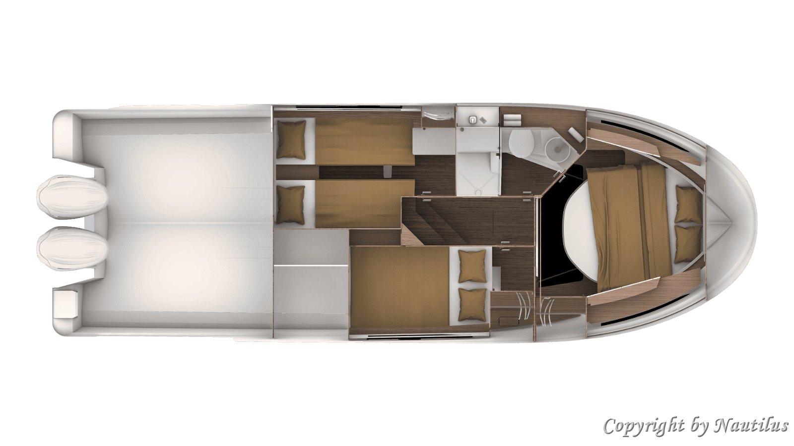 Merry-Fisher-1095-Fly-Serie2-Layout Pianta del salone - Merry Fisher 1095 Fly Serie 2 Flessibilità del salone Ponte superiore (Flybridge) Layout cabine - Letto matrimoniale Layout cabine - Letti singoli