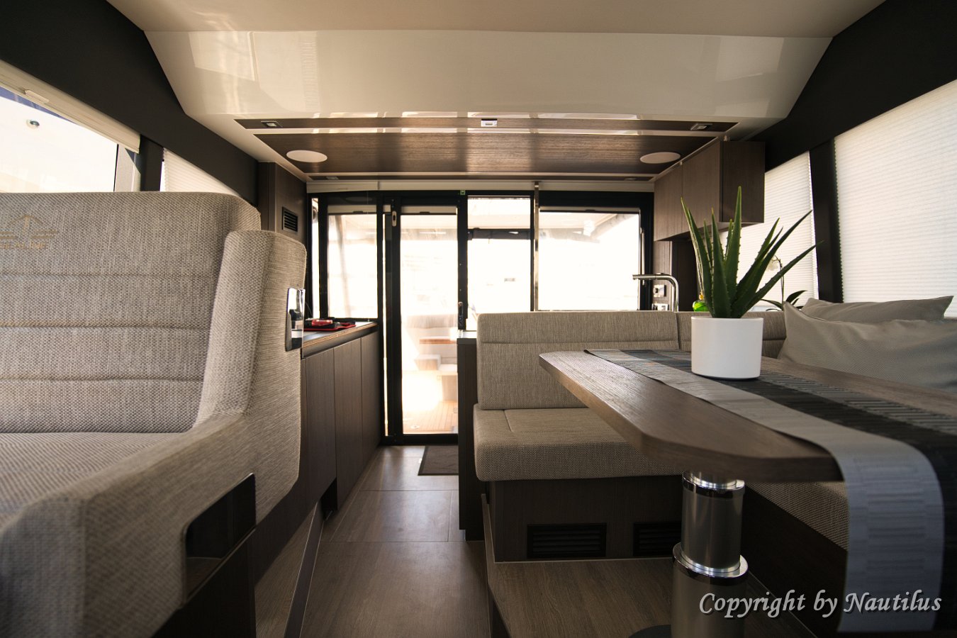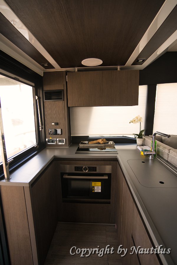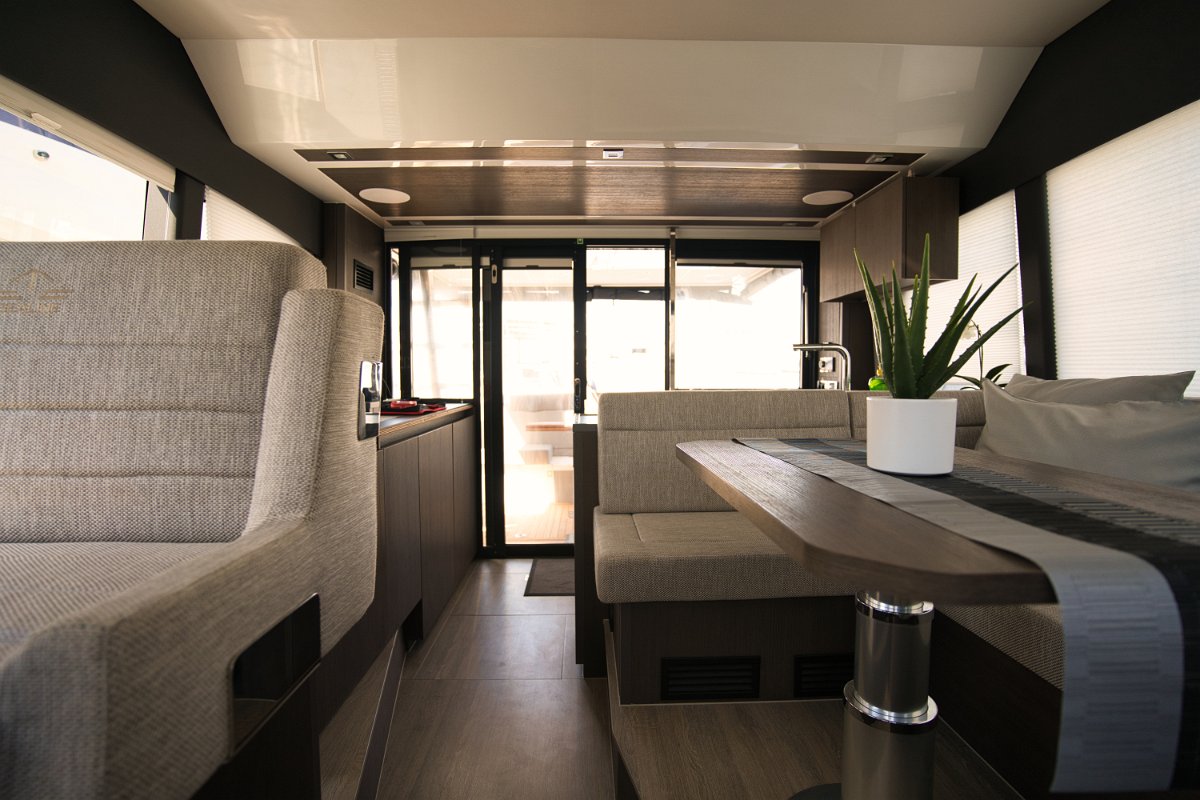 Sealine F430 - Panoramic Salon on "Grace II" Sealine F430 - Fully Equipped Galley Interior Helm Station Galley Details - Sealine F430 Entertainment & Controls Interior Design Sealine F430 Open Concept Salon Main Switchboard